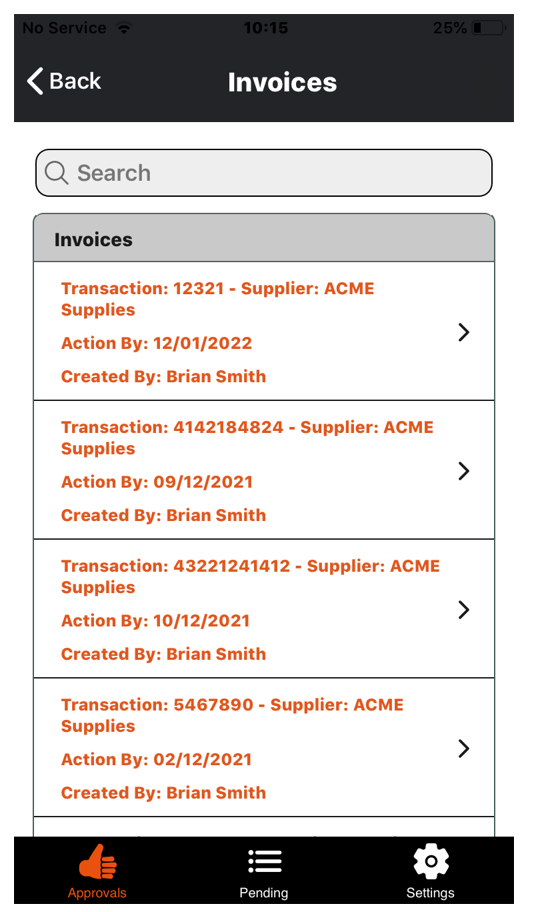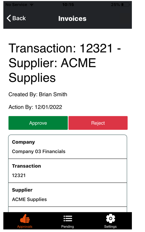 Log into Air Approvals using just the PIN set up when you registered. The Approvals page will be displayed with the categories of the approval items waiting to be reviewed.