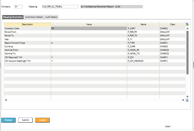 - CSV Account Headings? Y/N - enter a Y for the account headings to be displayed on the report.