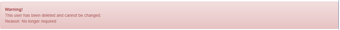 A user can be deleted or reinstated by clicking the ‘reinstate’ button on the ‘User Detail’ page.