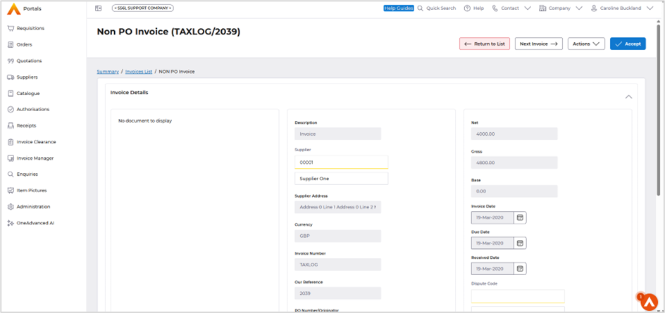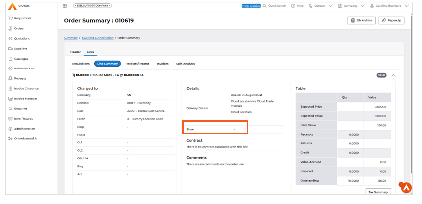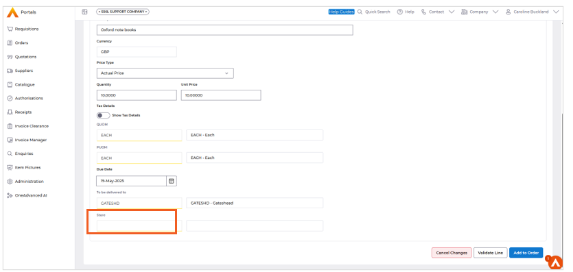 Implemented ‘Store’ field to the Requisition creation and Summary screens in Portals, ensuring consistency with data entry in Core Financials. Only applicable when using Inventory Management.