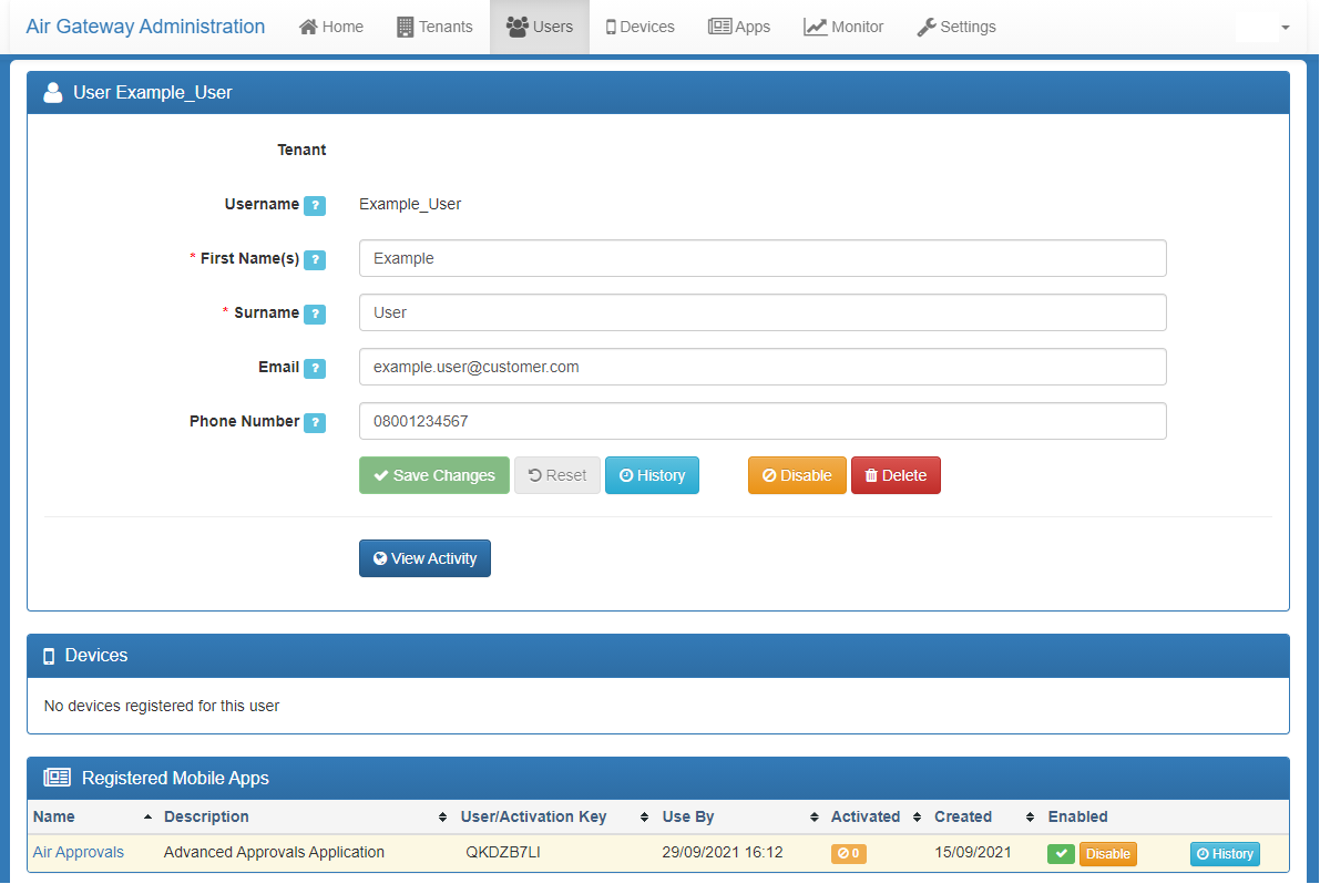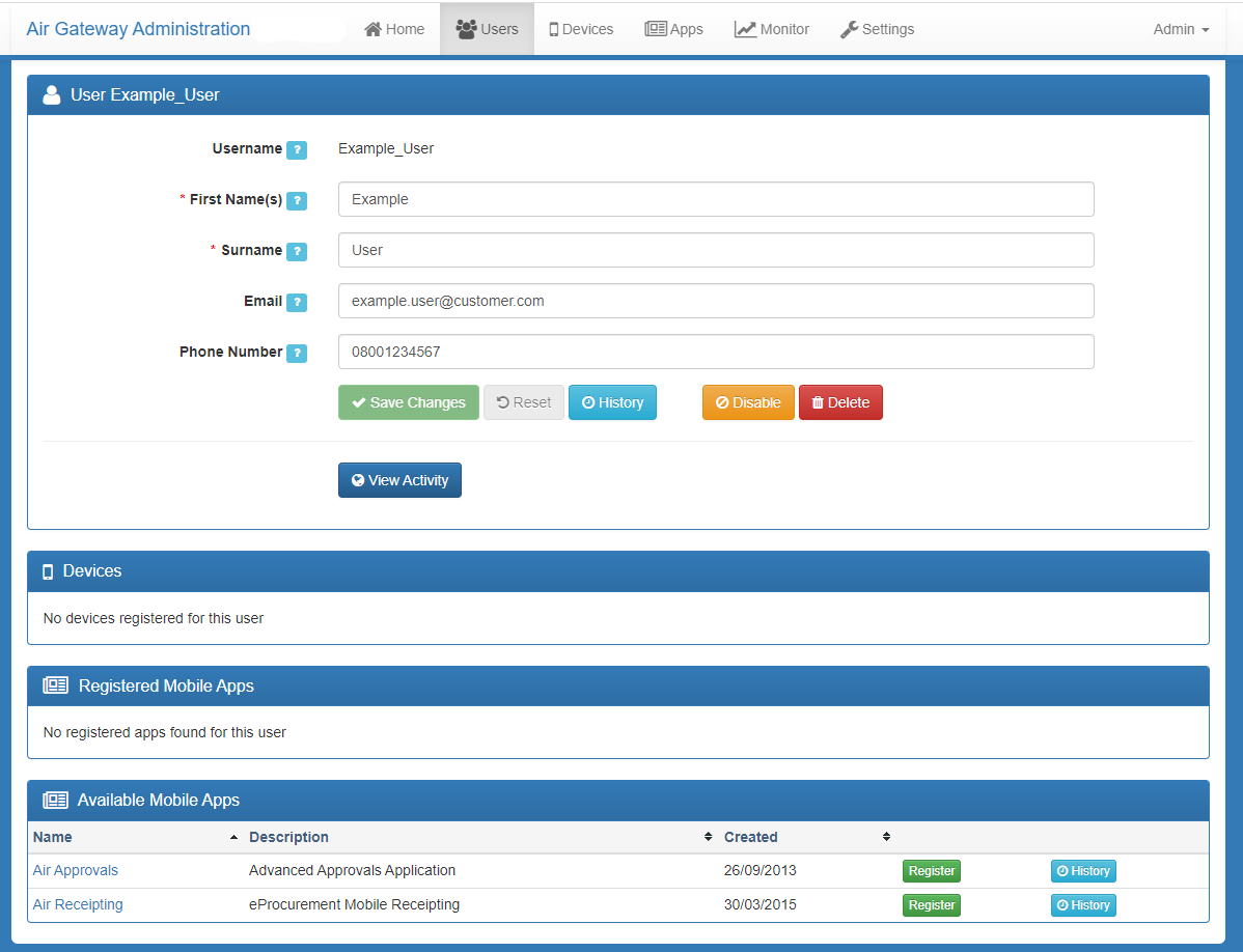 This article describes the steps required to create a new mobile device user in the Advanced Air Gateway. Once complete, the user will be able to register Air Approvals with a mobile device and login to approve items.