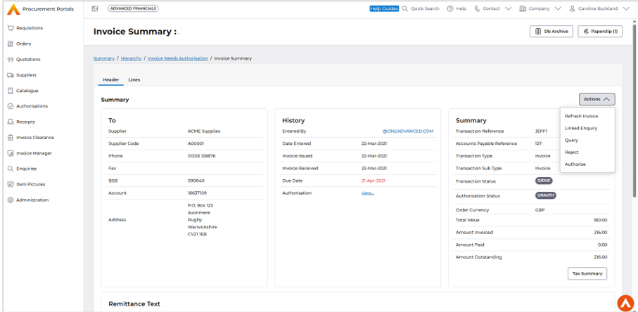 - Enhanced Requisition and Contract Authorisation: We've introduced a funds check feature to ensure seamless authorisation of requisitions and contracts.